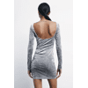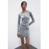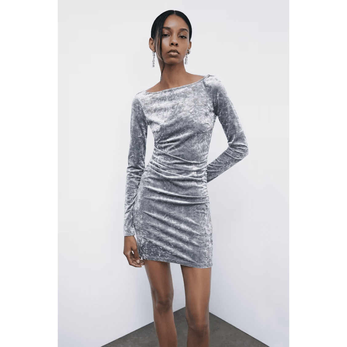 Dieses Mini-Kleid mit langen Ärmeln aus der „ESSENTIAL“-Linie besteht aus glänzendem, gehämmertem Velours. Die figurbetonte Silhouette wird durch einen tiefen Rückenausschnitt und einen raffinierten seitlichen Drapé betont, das dem Oberteil fließende Bewegung verleiht. Schlicht, aber wirkungsvoll – die perfekte Wahl für Winterabende.