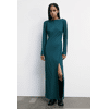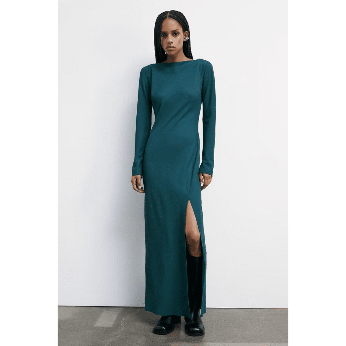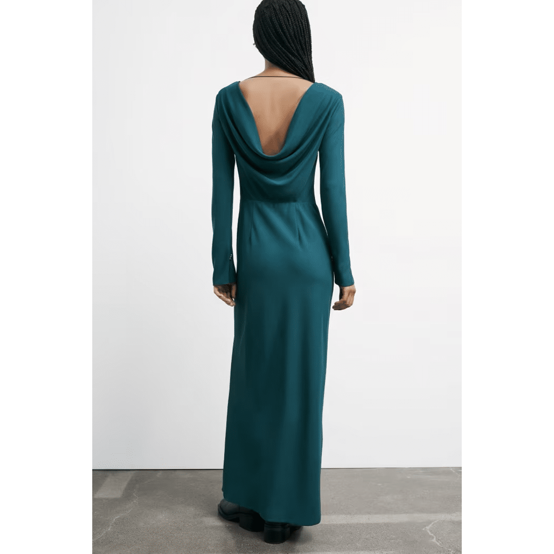 Dieses lange Kleid aus Stretch-Stoff besticht durch einen tiefen, drapierten Rückenausschnitt. Das Oberteil schmiegt sich sanft an den Körper, bevor es in einen fließenden Rock mit seitlichen Schlitzen übergeht, die Kühnheit und Bewegungsfreiheit vereinen. Sinnlich und anmutig, bewegt es sich bei jedem Schritt mit natürlicher Eleganz und sorgt für eine mühelos raffinierte Ausstrahlung.