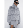 Kurzer Flauschiger Mantel mit Hohem Kragen